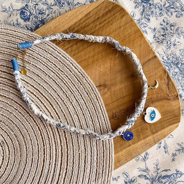 The chunky chain is cute, but this soft fabric collar is giving us unique boho-chic vibes.