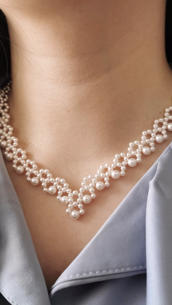 The way the small faux pearls shimmer reminds me of a viral “old money” aesthetic hack.