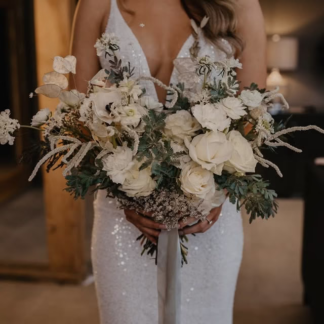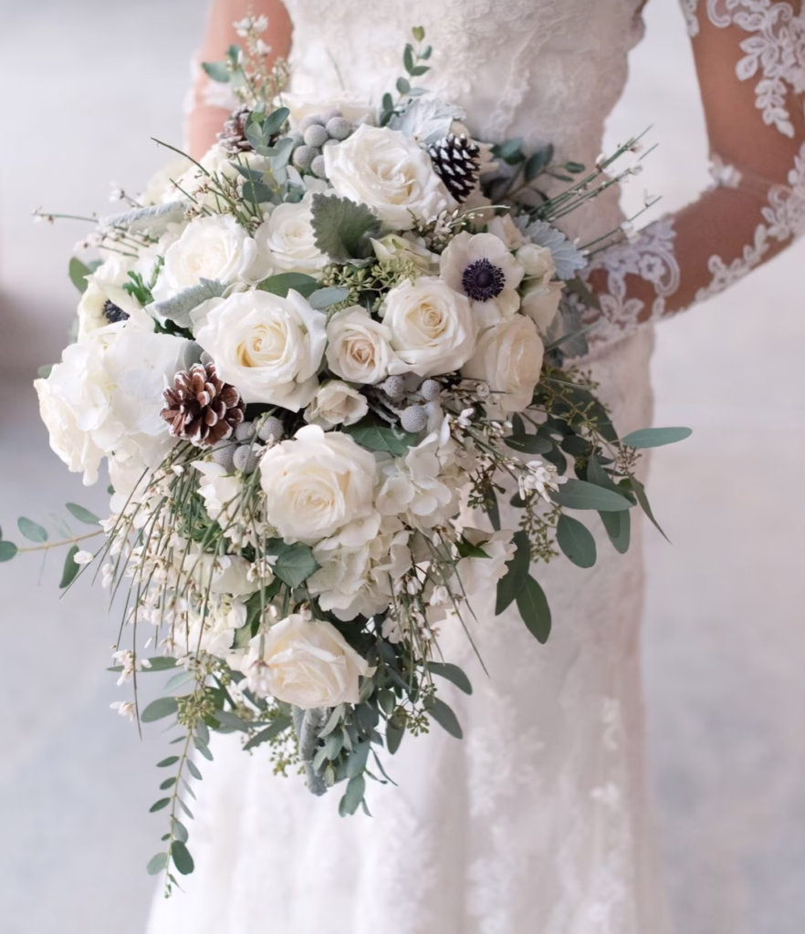 This bouquet is a stellar choice if you want a look that is timeless, fragrant, and captures the quiet beauty of a winter forest.