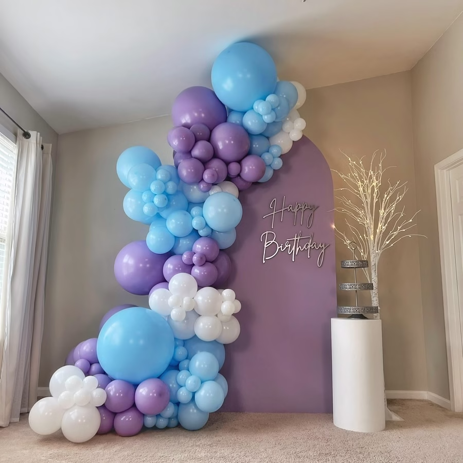 Notice how the stunning combination of lavender and baby blue balloons feels so fresh and wonderfully festive.