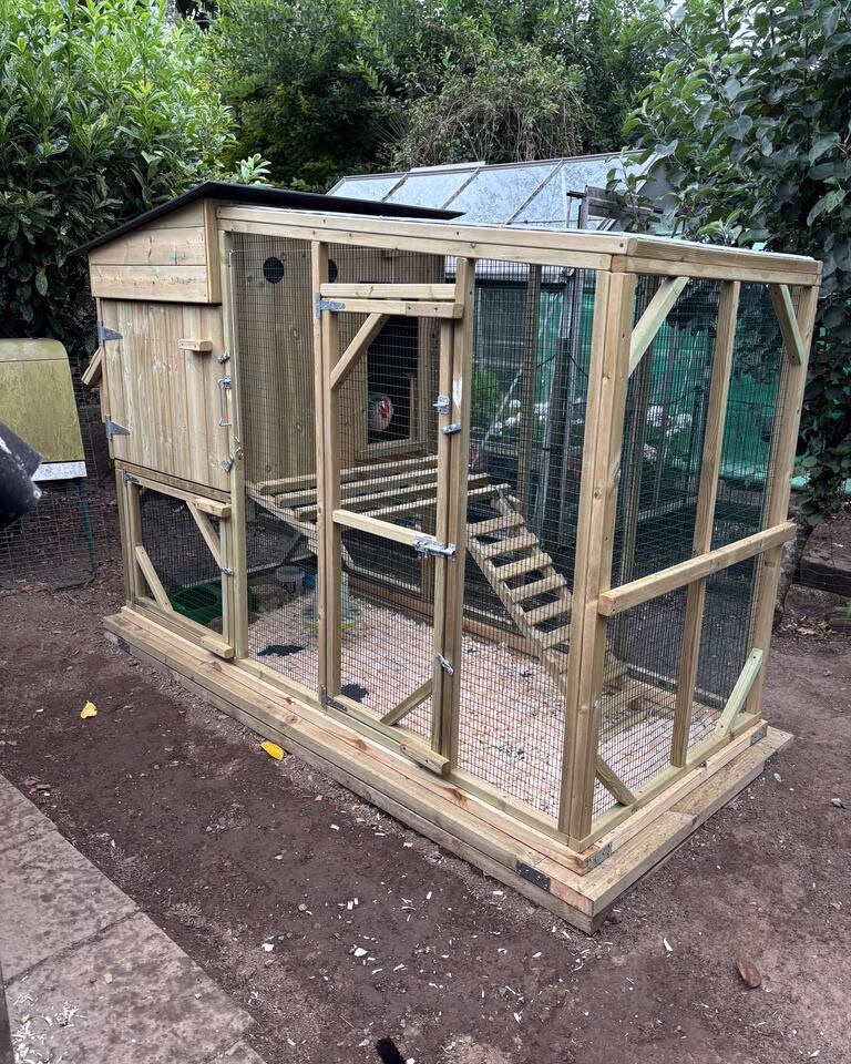 Building the main structure high up on solid wooden legs creates an instant, spacious, fully covered run underneath, which is always efficient.