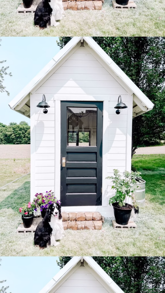 Stop everything, because this reclaimed wood shed with the pop of turquoise is giving me serious HGTV vibes.