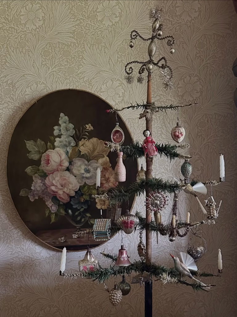 Delicate beading and tiny mercury glass details really capture an elegant vintage feel.