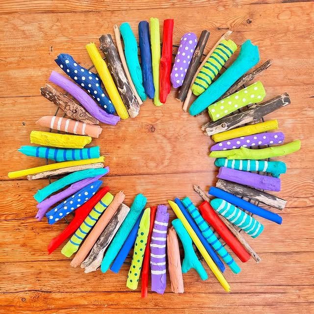 I really love how some sticks are painted in bold solid colors, while others feature playful polka dots and striped patterns.