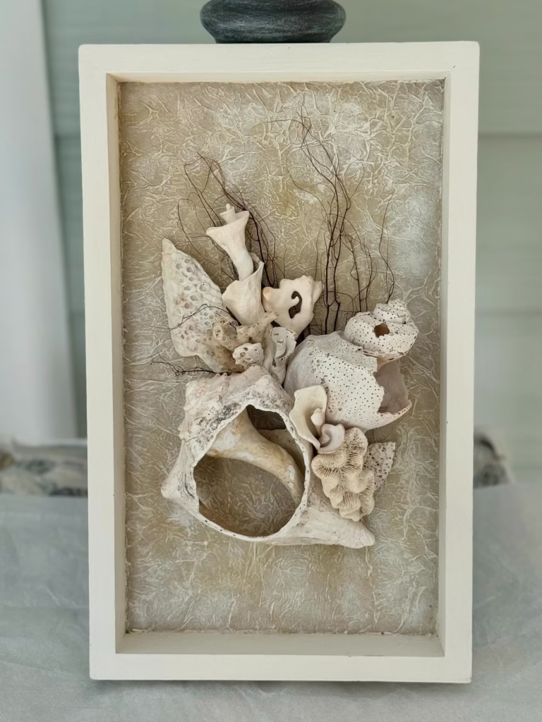 The way the artist arranged the broken shells and coral pieces creates a beautiful natural three-dimensional effect.