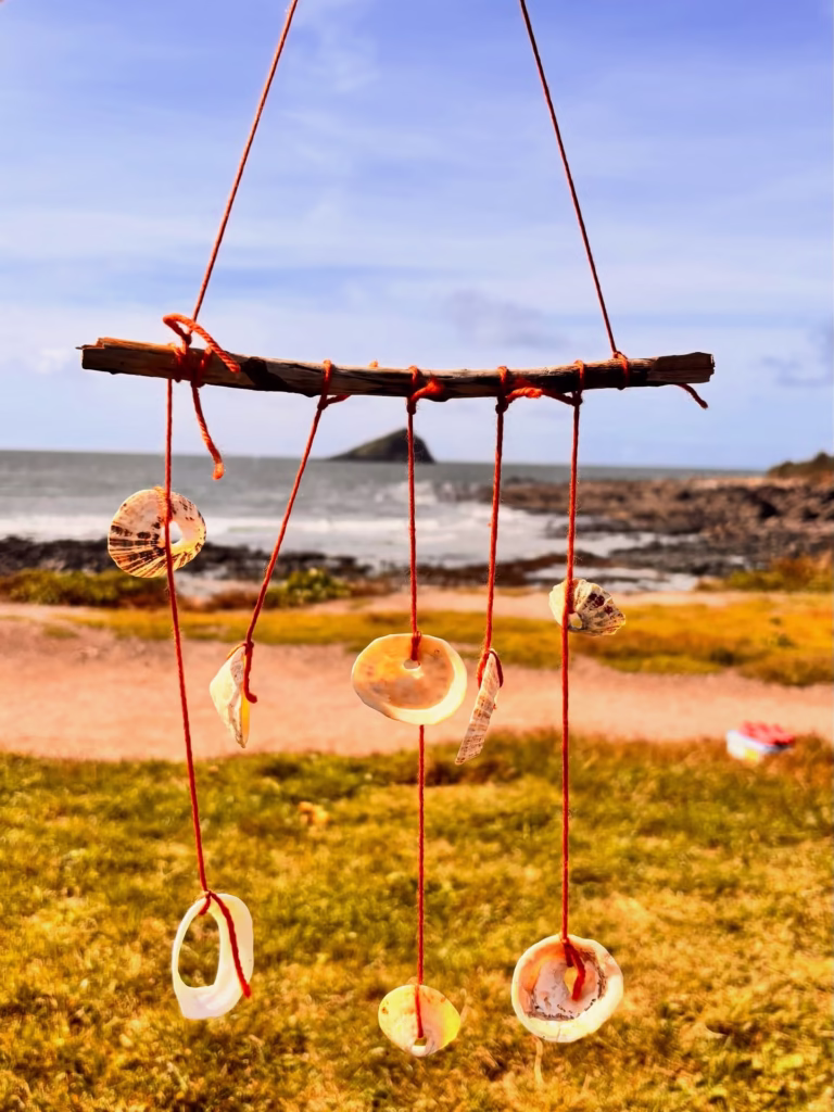 The simple stringing of the natural shells from a piece of driftwood creates a very rustic minimalist aesthetic.