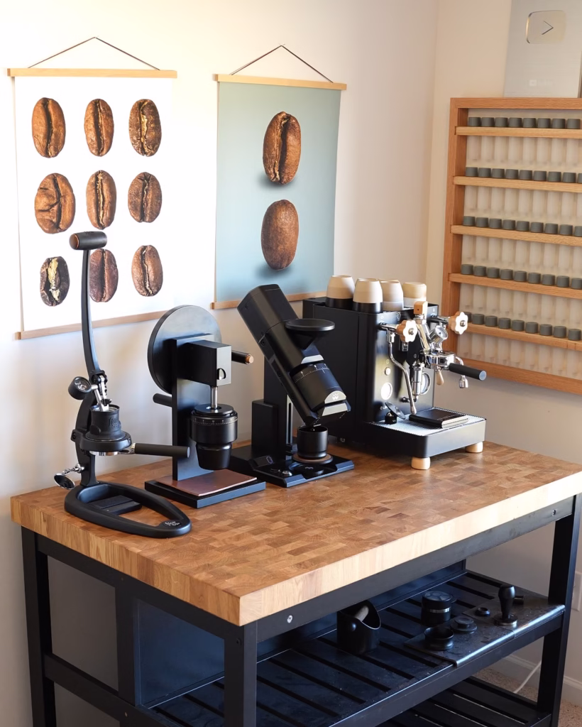 Plus, that cool wooden wall rack for the coffee bean tubes makes you feel like you’re in a high-tech science lab, which is just fun!