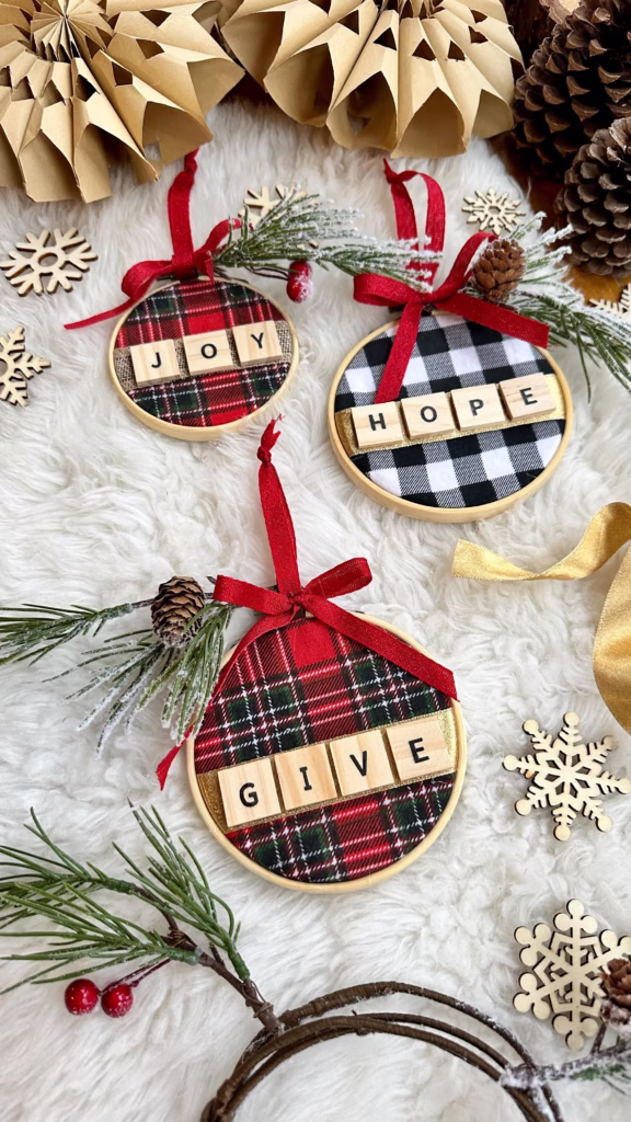 These little hoop ornaments use trendy letter beads to spell out the most cozy, charming phrases, period.