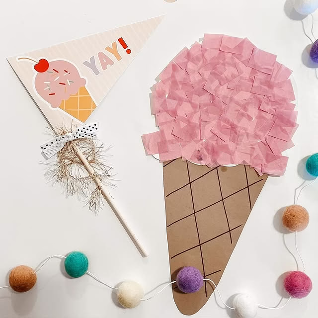 You can layer the tissue paper for a textured, realistic scoop effect, or use different colors to make it look like rainbow sherbet.